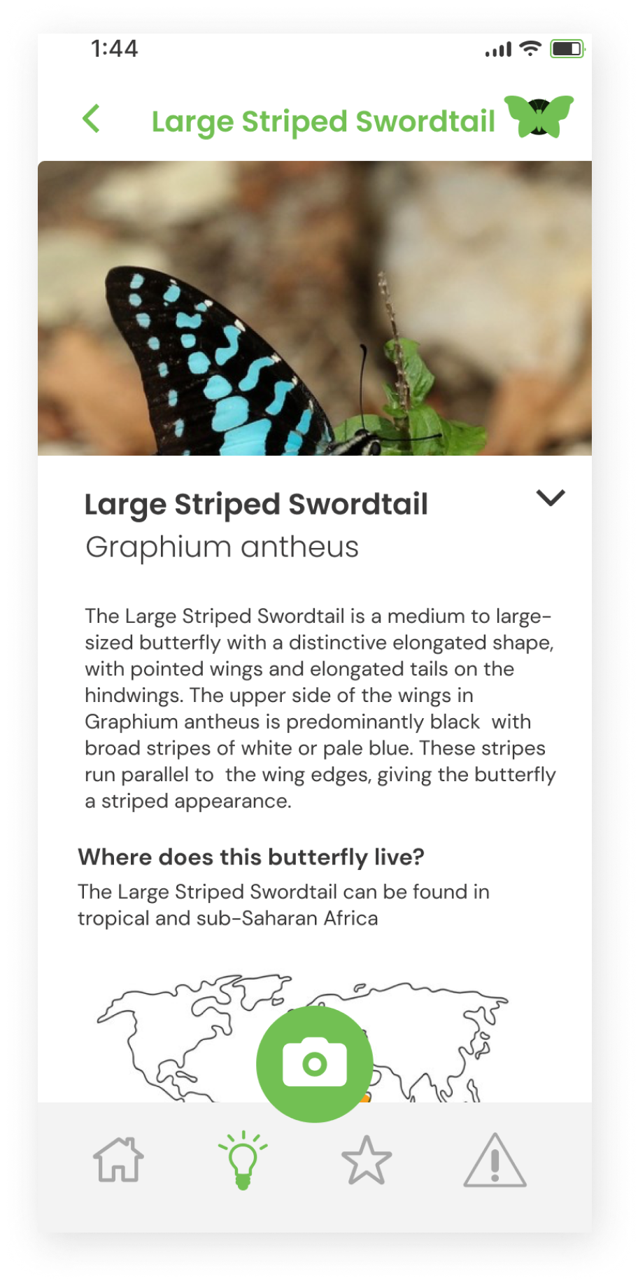 Linking reported images of downed butterflies to a central base for employees to use when gathering butterflies for pinning workshops