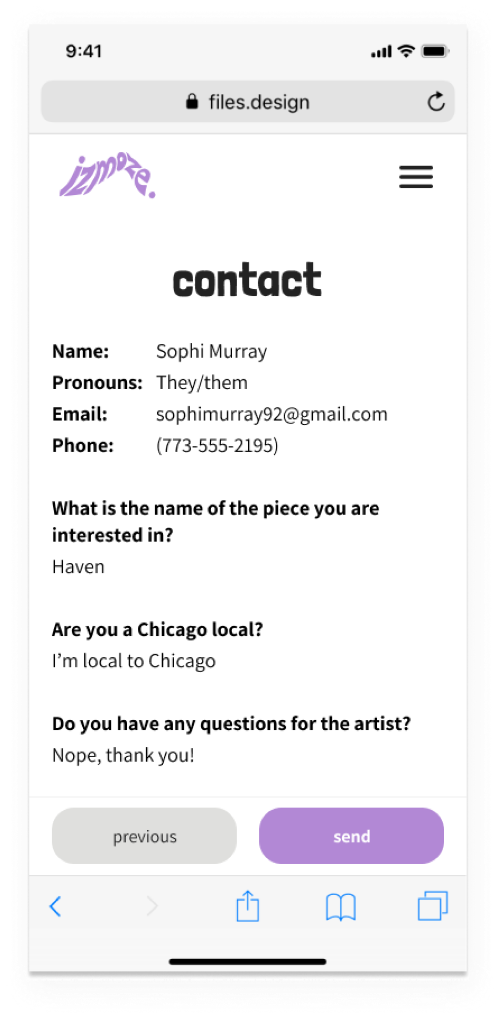 When the opportunity to work with a queer, disabled local artist from Chicago came up, I jumped at the chance to help Iz build a booking site, portfolio, and store. The project aimed to shift the artist’s client interactions from social media to their own website, helping them establish a stronger sense of legitimacy and streamline the booking process.