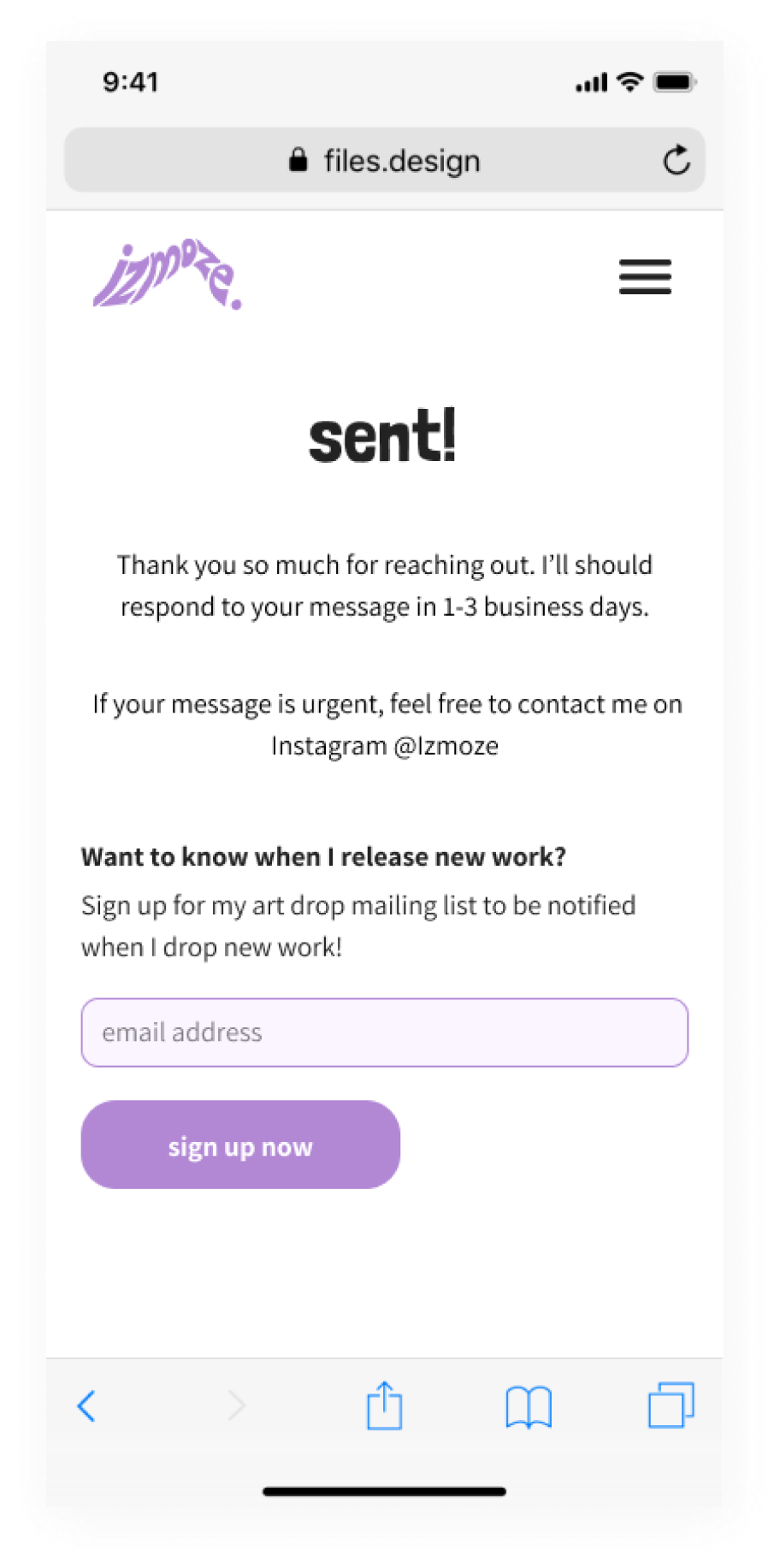 Building a user’s confidence and connection to the artist with clarity and simple contact forms helps to grow and maintain the vital artist-client intimacy we set out to keep.