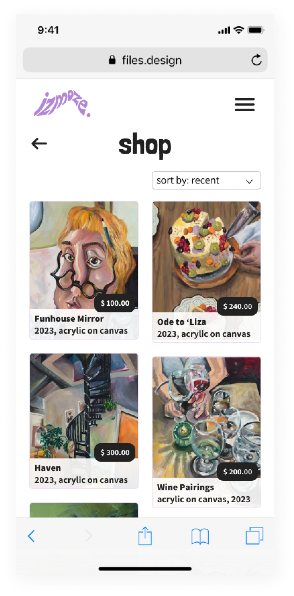 With a masonry format, our artist is able to display their available pieces and build the foundation for future income streams.